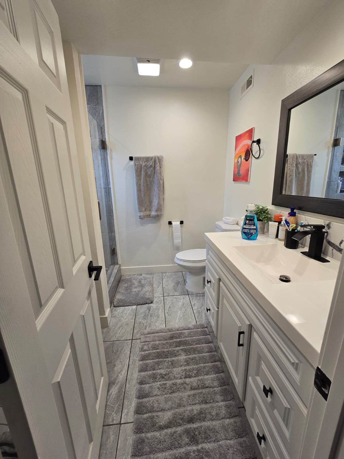It's a private furnished bedroom and bathroom in a house on Spruce Street.