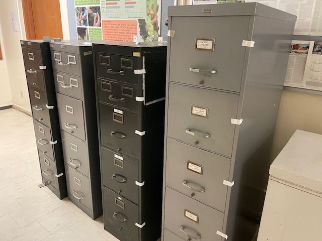Four filing cabinets are outside Chapman 108\109 to anyone who might like