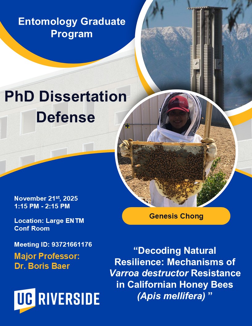 [Entm-researchstaff] ENTM Ph.D. Dissertation Defense Defense Announcement: Genesis Chong 11/21/25 1:15p Large ENTM Conf Room