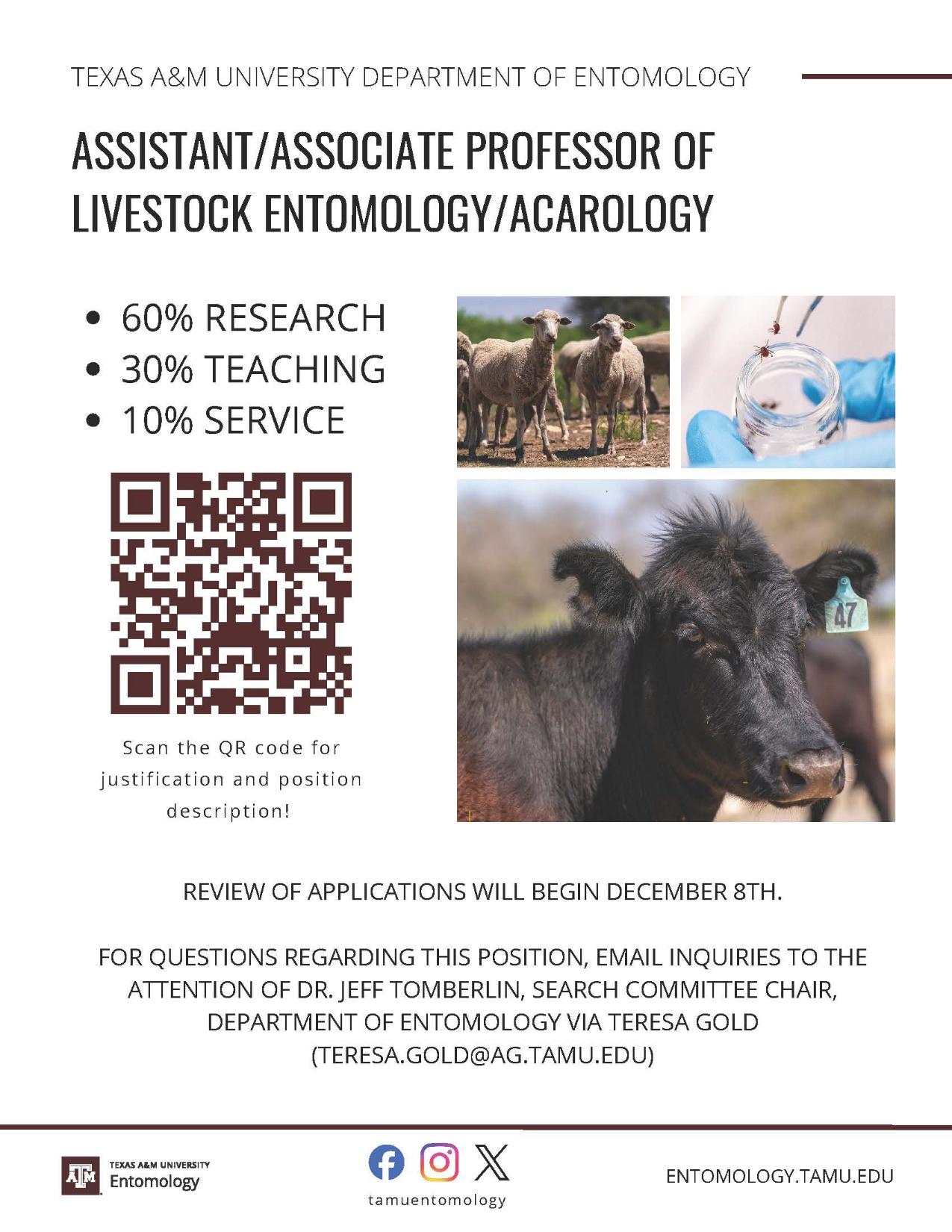 [Entm-researchstaff] Fwd: TAMU-Assistant or Associate Professor of Livestock Entomology/Acarology