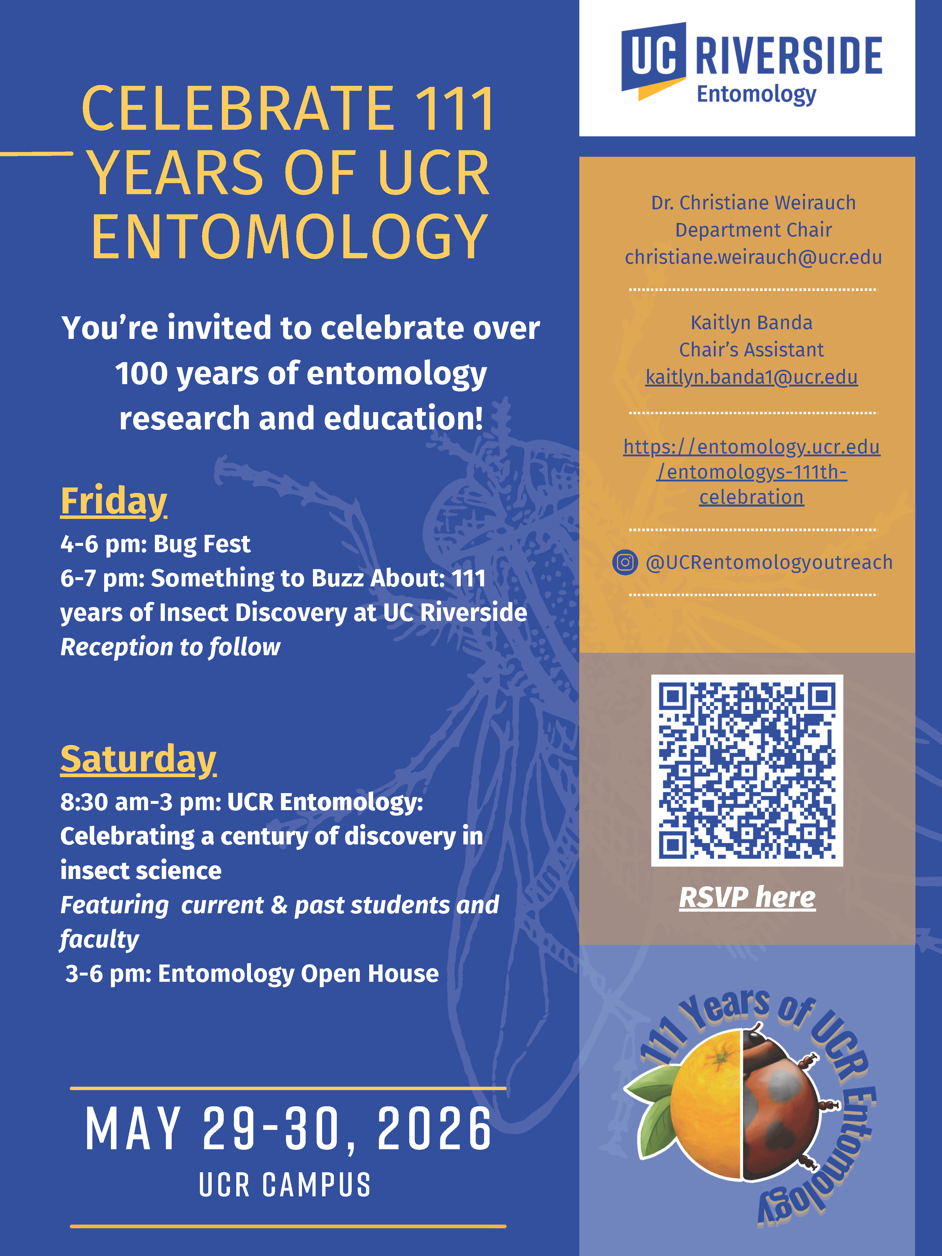 will be celebrating its 111th anniversary on <https://entomology.ucr.edu/>*May
