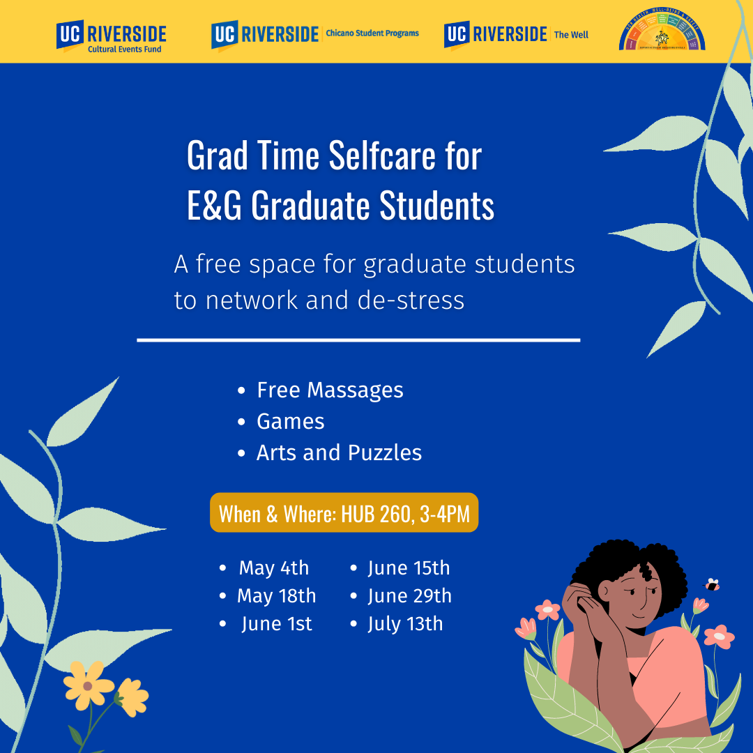 CSP in collaboration with The Well will be having a bi-weekly graduate student self-care series. See image below for full details.