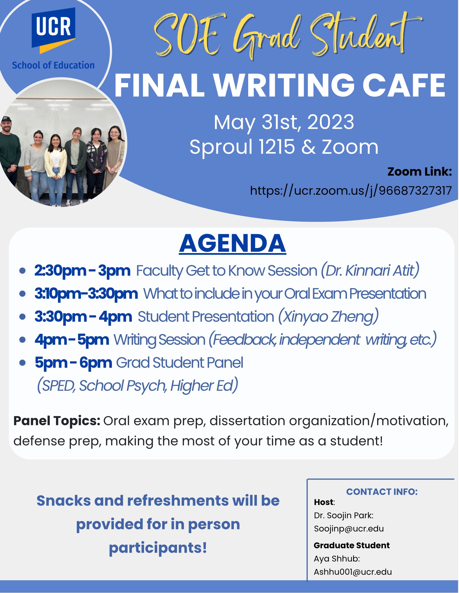 [Gradstudents] [REMINDER] SOE Graduate Writing Cafe - May 31st