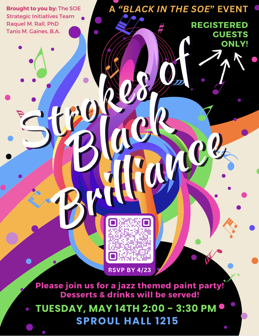 Please join us for an unforgettable afternoon celebrating Black brilliance at our last 'Black in the SOE' event of the Spring quarter!