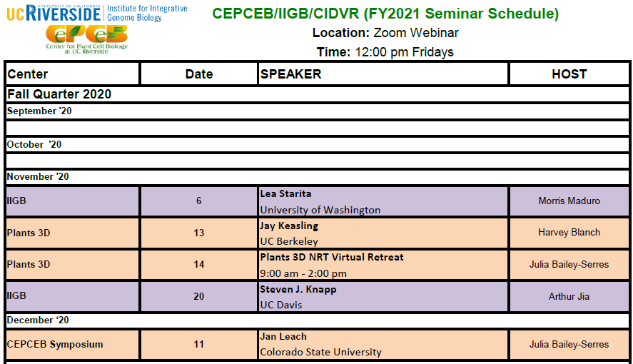 [IIGB_All] CEPCEB/IIGB/CIDVR Seminar Schedule - Fall 2020