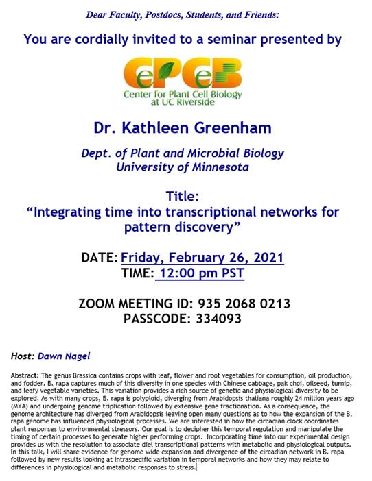 [IIGB_All] CEPCEB Seminar Speaker: Kathleen Greenham - February 26, 2021