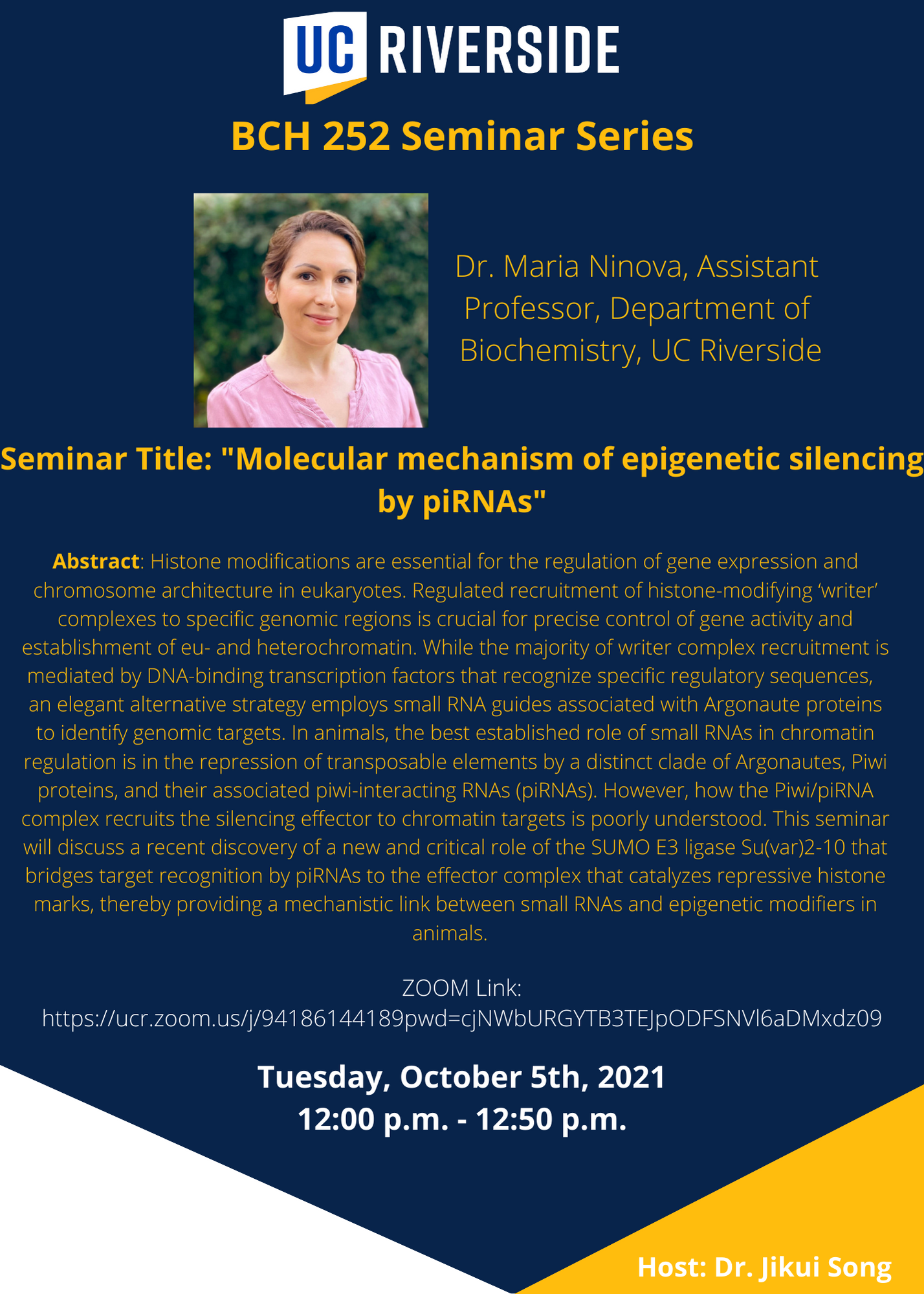 [IIGB_All] TODAY-BCH 252 Fall 2021 Seminar- Dr. Maria Ninova 10/5/2021