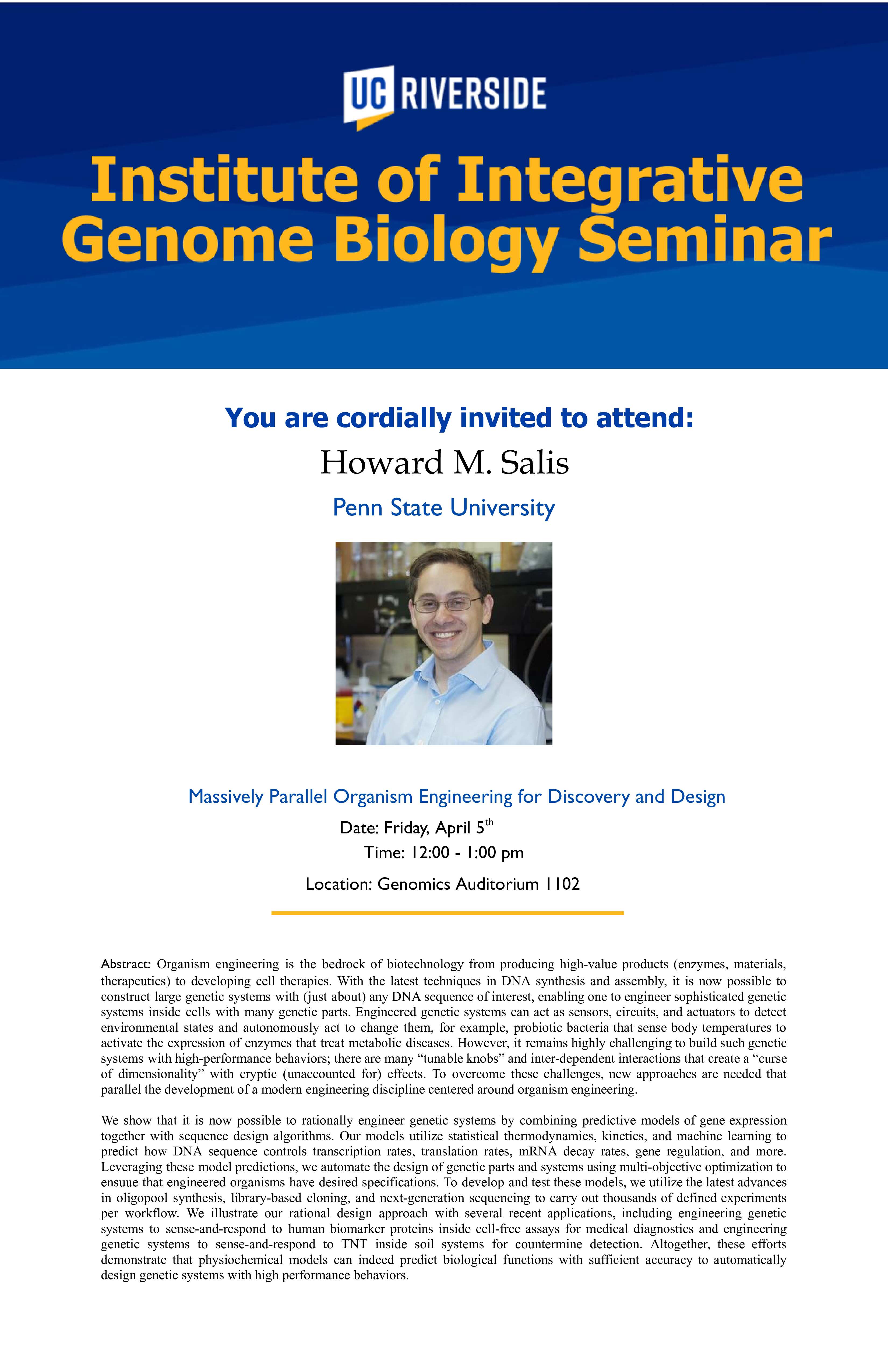 [IIGB_All] IIGB Seminar- Sign Up to Meet with Dr. Howard Salis! -Friday 4/5