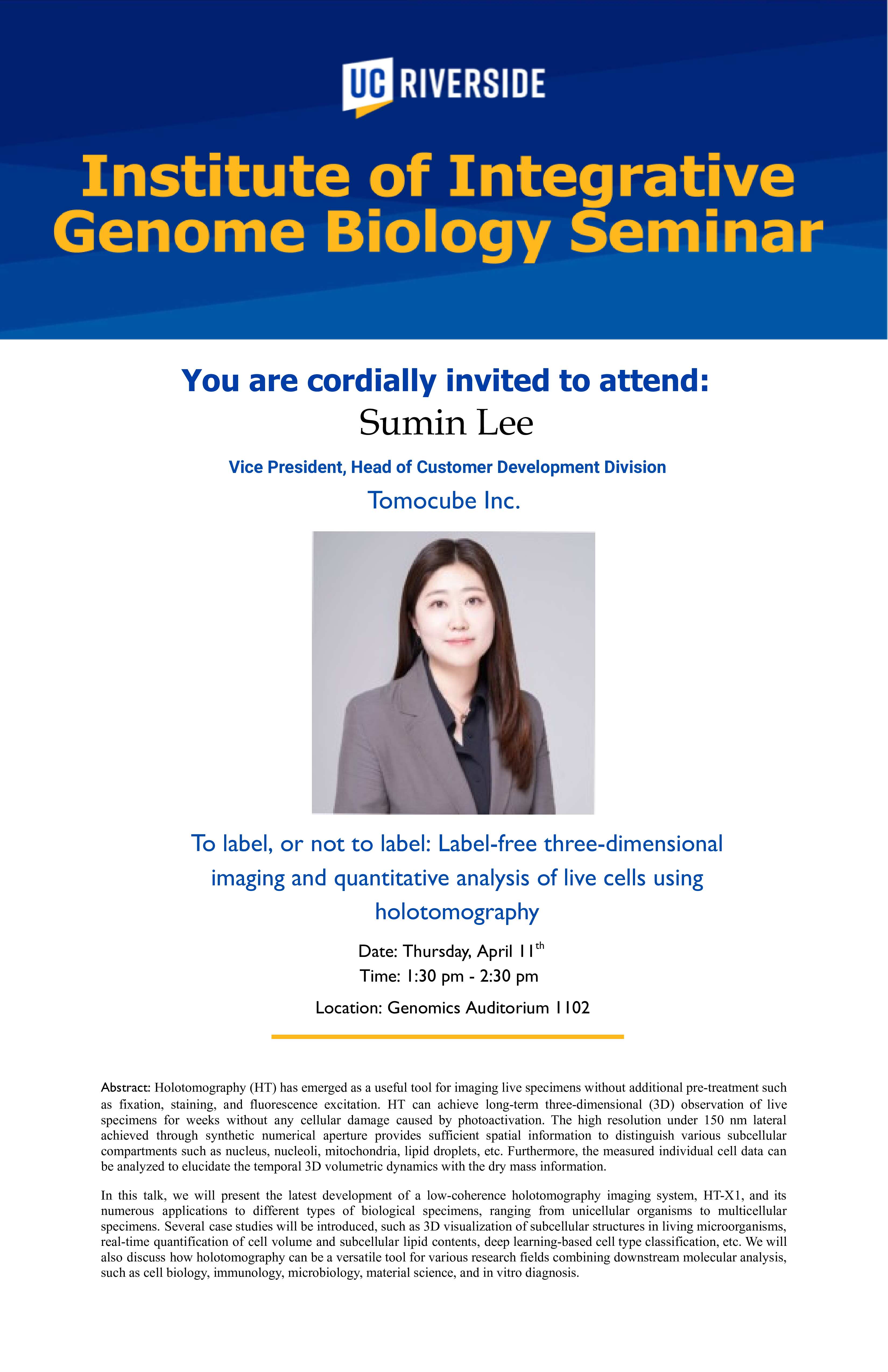 [IIGB_All] IIGB Special Seminar- April 11 - Dr. Sumin Lee