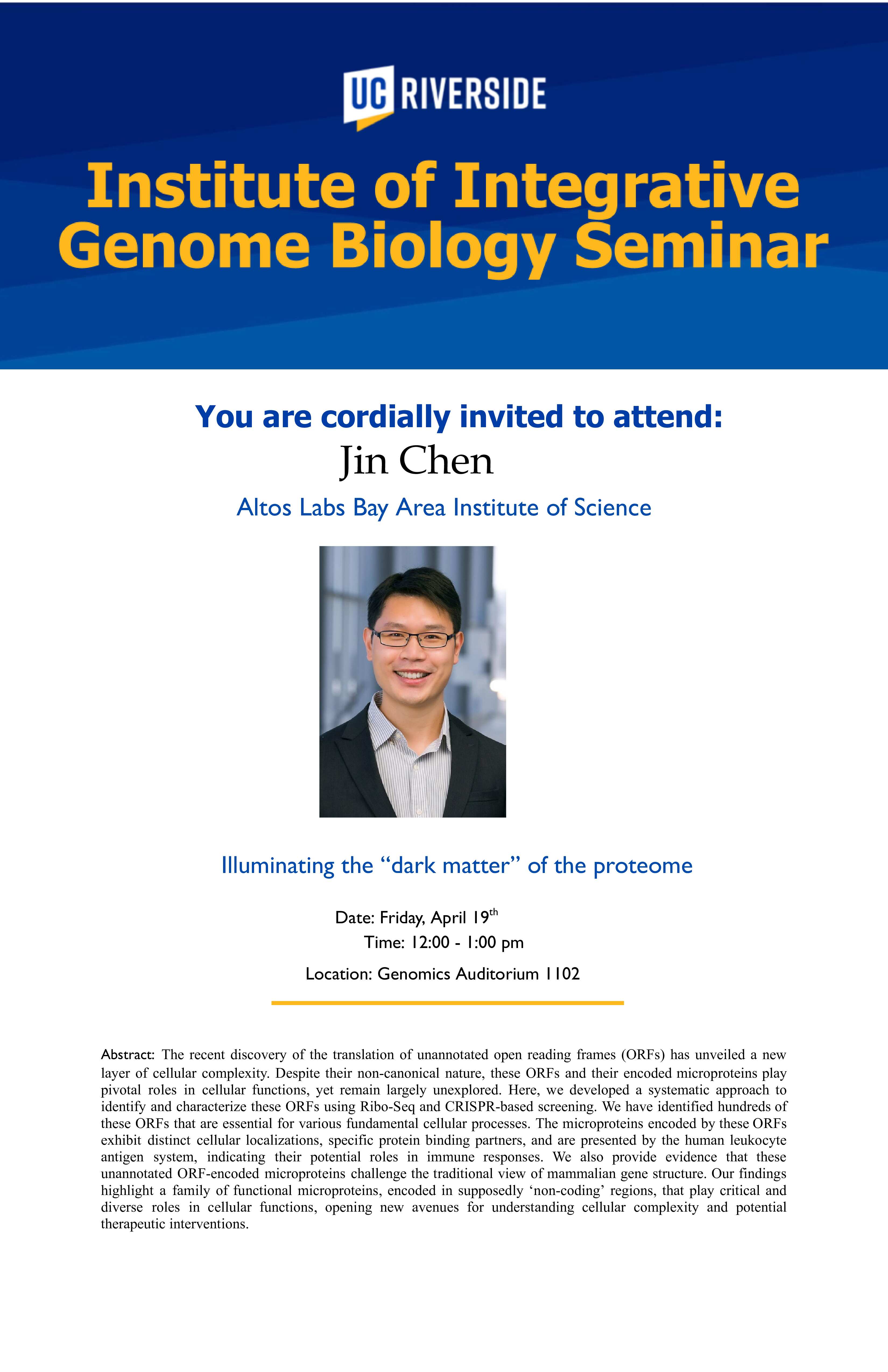 [IIGB_All] IIGB Seminar - TODAY - Jin Chen