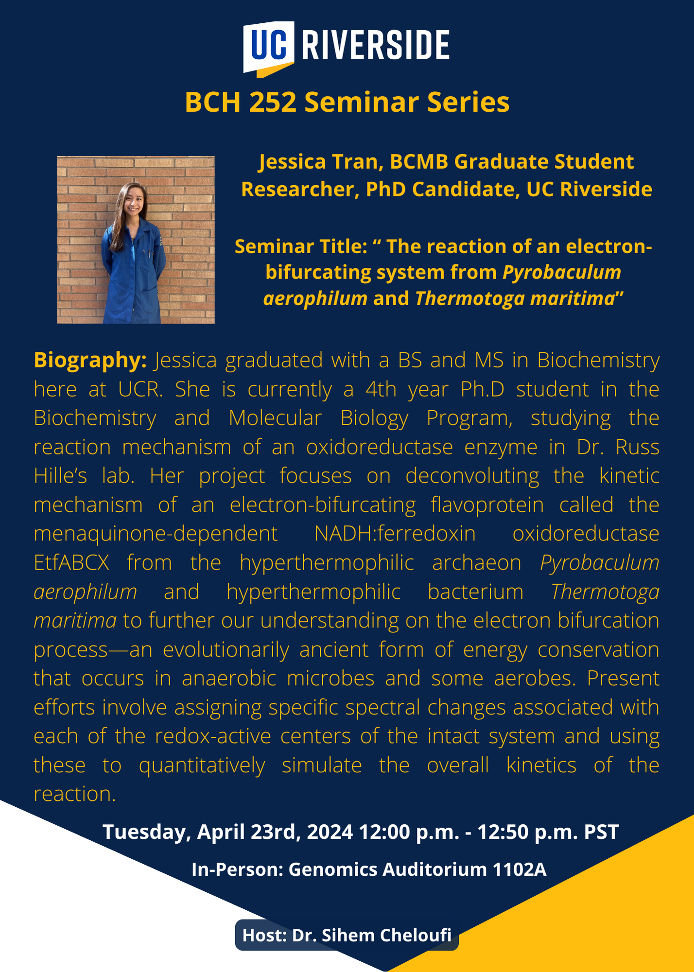 [IIGB_All] REMINDER - BCH 251/252 Seminar Series Spring 2024 - Jessica Tran, UC Riverside [TODAY] 4/23/2024 12:00pm