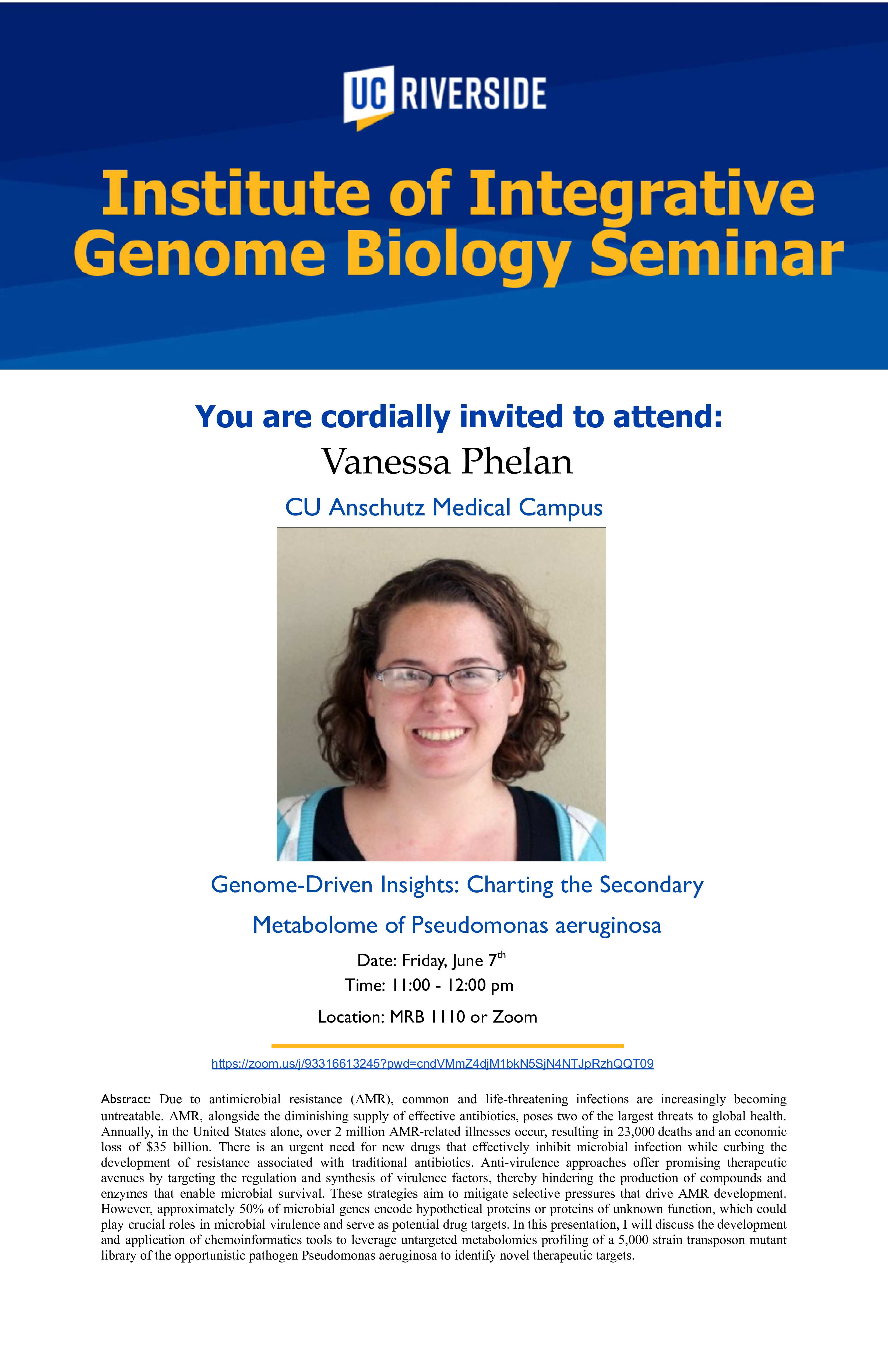 [IIGB_All] IIGB Seminar Notice: Vanessa Phelan 6/7/2024