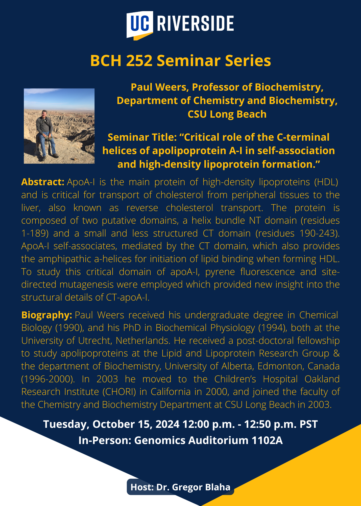[IIGB_All] BCH 251/252 Seminar Series Fall 2024 - Paul Weers, California State University Long Beach 10/15/2024 12:00pm
