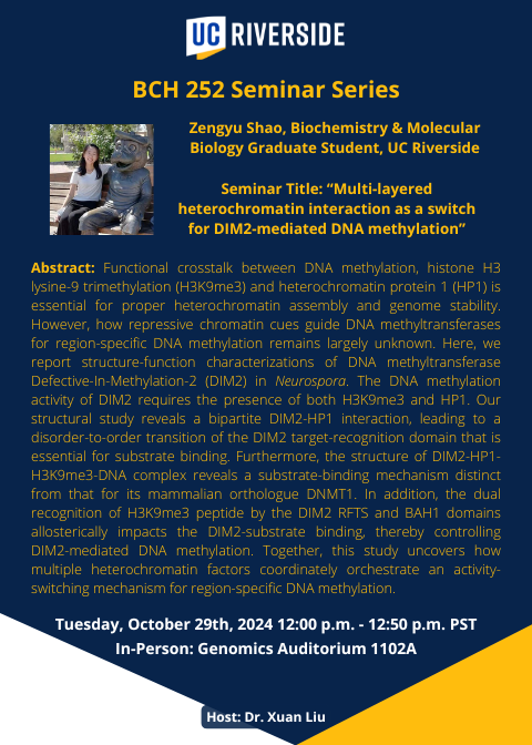 [IIGB_All] REMINDER - BCH 251/252 Seminar Series Fall 2024 - Zengyu Shao, UC Riverside [TODAY] 10/29/2024 12:00pm