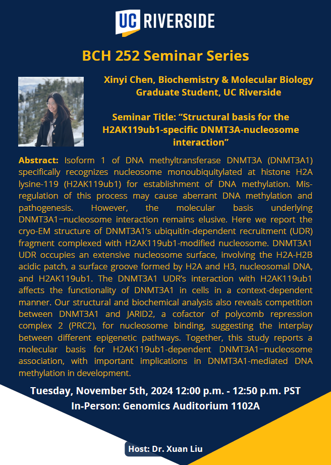 [IIGB_All] BCH 251/252 Seminar Series Fall 2024 - Xinyi Chen, UC Riverside 11/5/2024 12:00pm