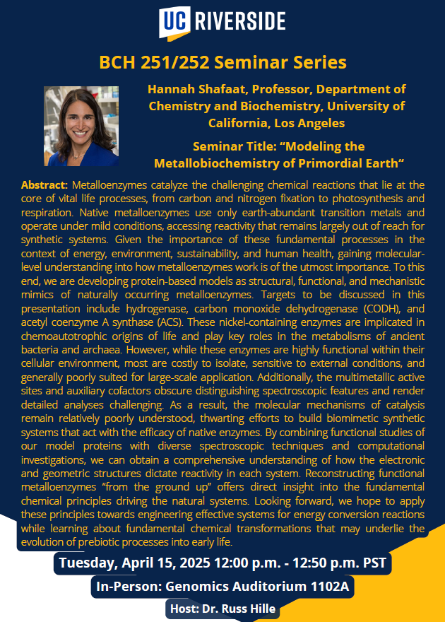 [IIGB_All] BCH 251/252 Seminar Series Spring 2025 - Hannah Shafaat, UC Los Angeles 4/15/2025 12:00pm