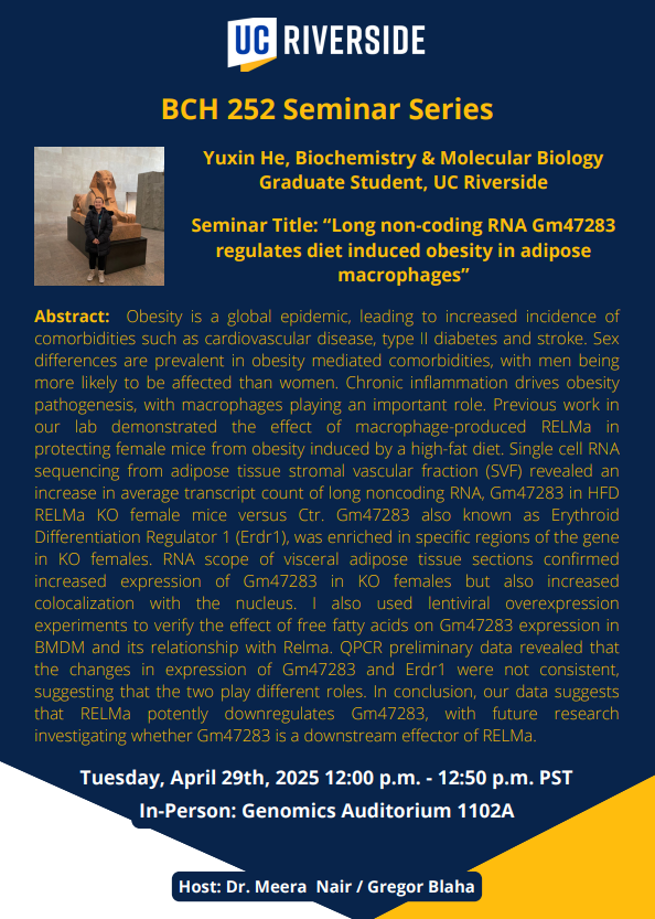 [IIGB_All] BCH 251/252 Seminar Series Spring 2025 - Yuxin He, UC Riverside 4/29/2025 12:00pm