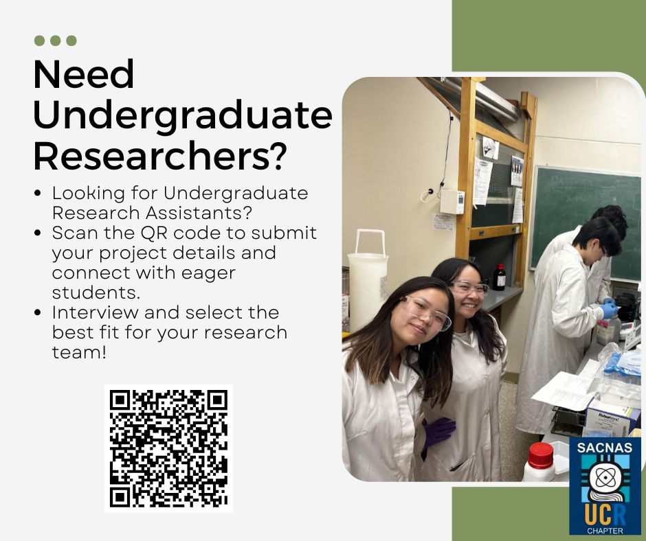 UCR SACNAS aims to bridge this gap by directly matching researchers in need of assistance with interested undergraduate students.