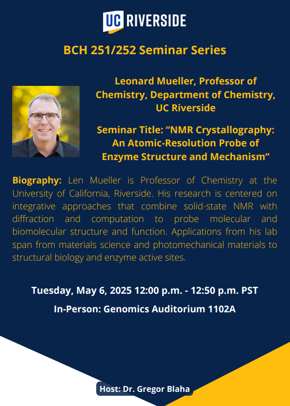 [IIGB_All] REMINDER - BCH 251/252 Seminar Series Spring 2025 - Leonard Mueller, UC Riverside [TODAY] 5/6/2025 12:00pm