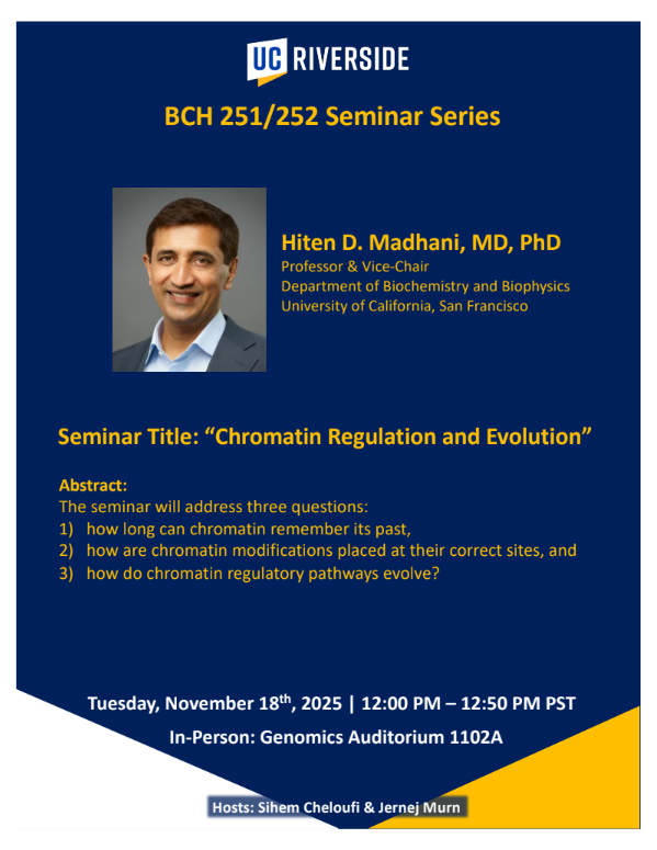 [IIGB_All] Biochemistry Invited Seminar: Dr. Hiten Madhani - Nov 18 at noon