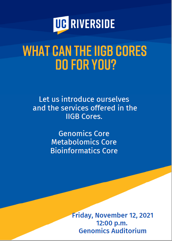 [IIGBCORES_All] IIGB Seminar: What Can the IIGB Cores Do for You? - Friday, 11/12/21