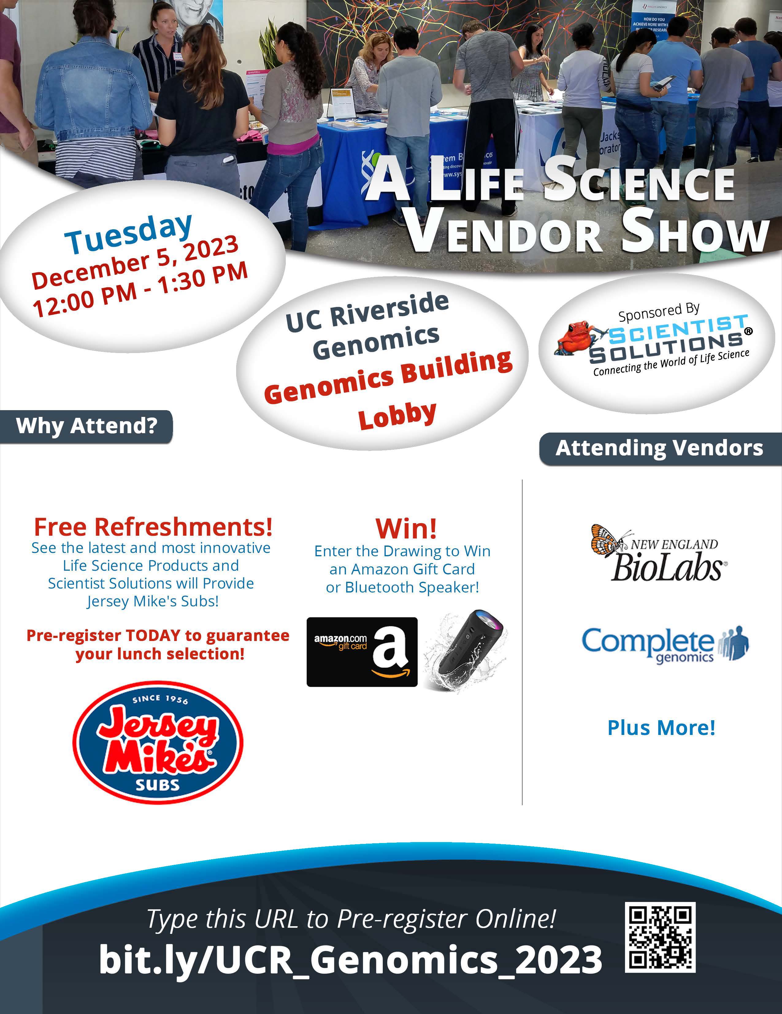On behalf of Scientist Solutions, we would like to invite you to a vendor show from 12:00 - 1:30 pm today at the Genomics lobby.