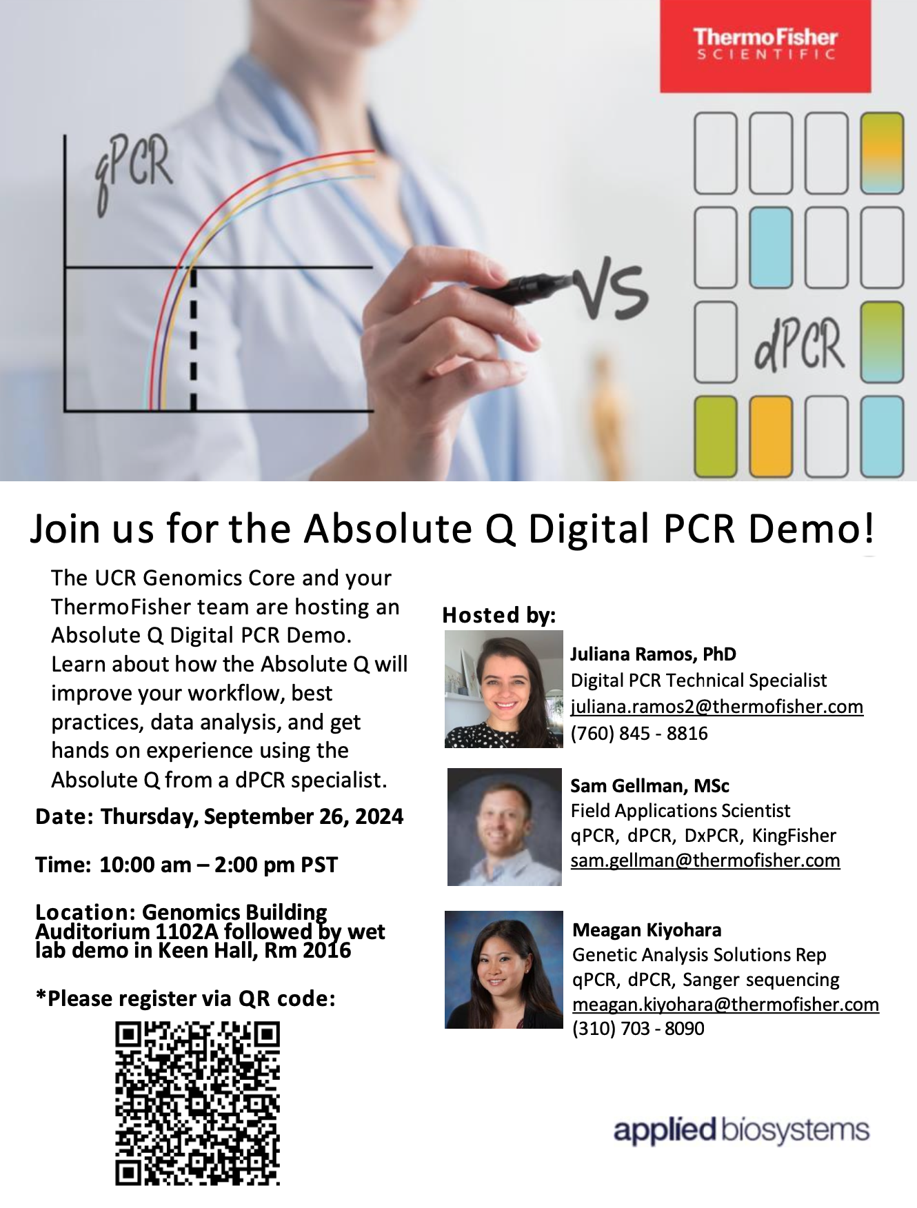 Q Ditital PCR Demo: 11:05 am-2:00 pm, Sept 26; Location: Lab 2016, Keen