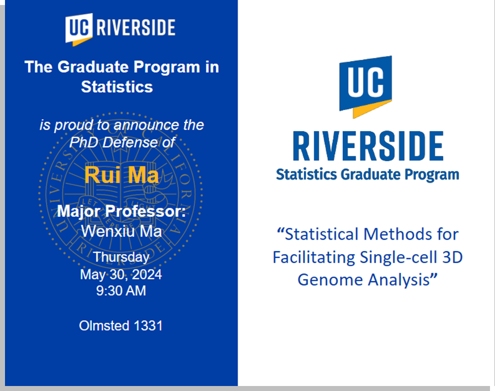 Subject: [Statfaculty] Final Defense Statistics PhD: Rui Ma May 30th, 2024,