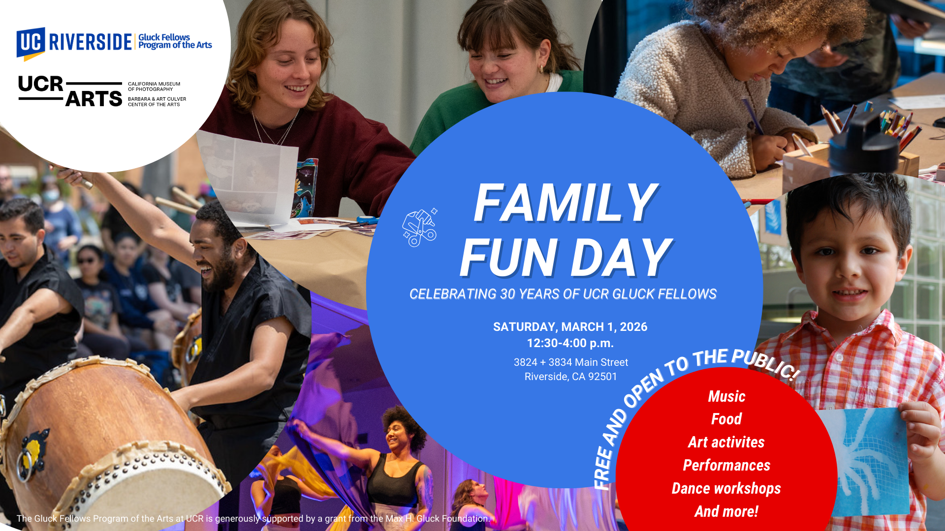 for music, dance, and art activities at UCR Arts.