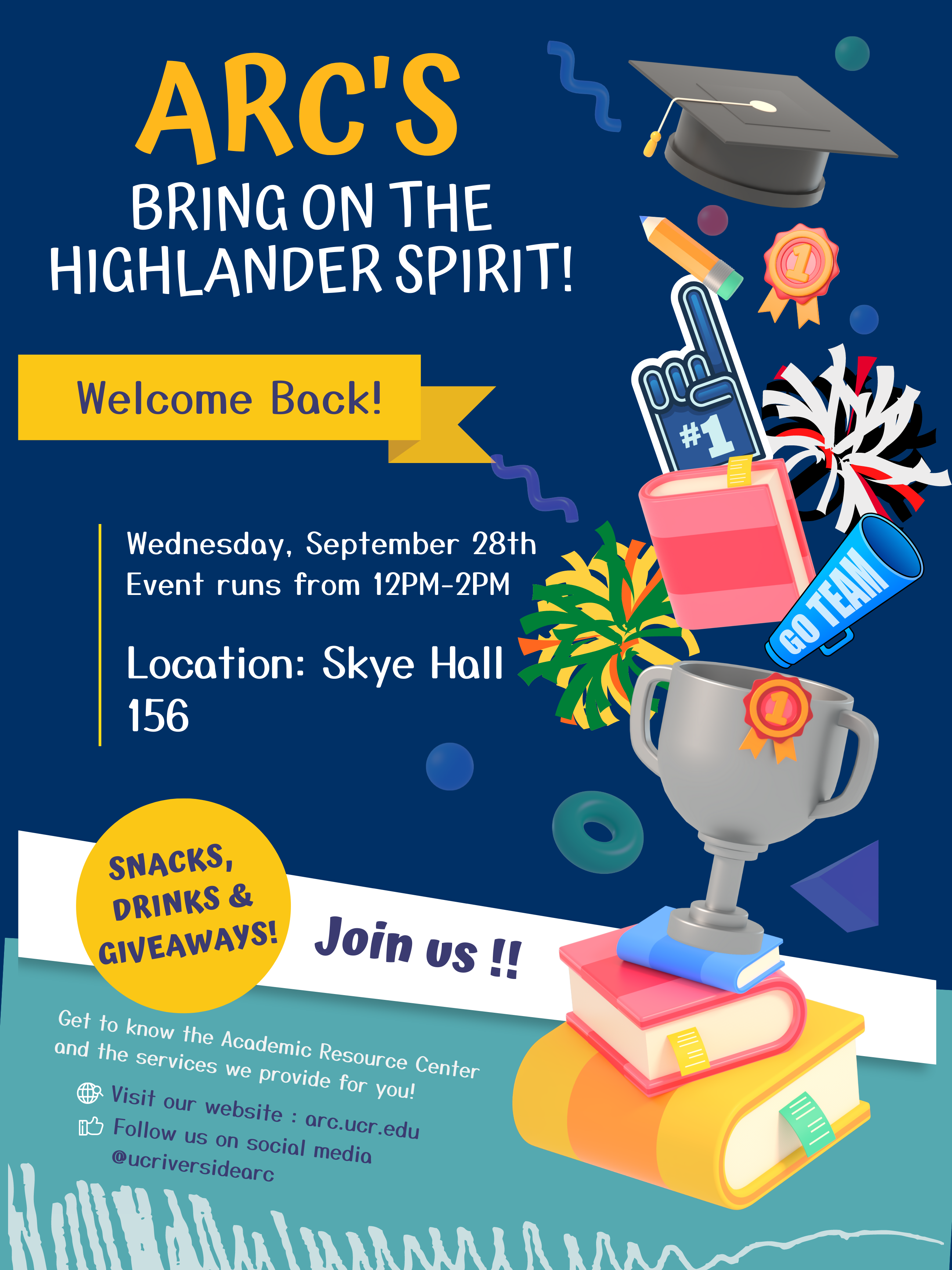 Join us today, Wednesday, September 28th in the Academic Resource Center for our Open House! Take a tour of our center and get to know the services we provide for you!