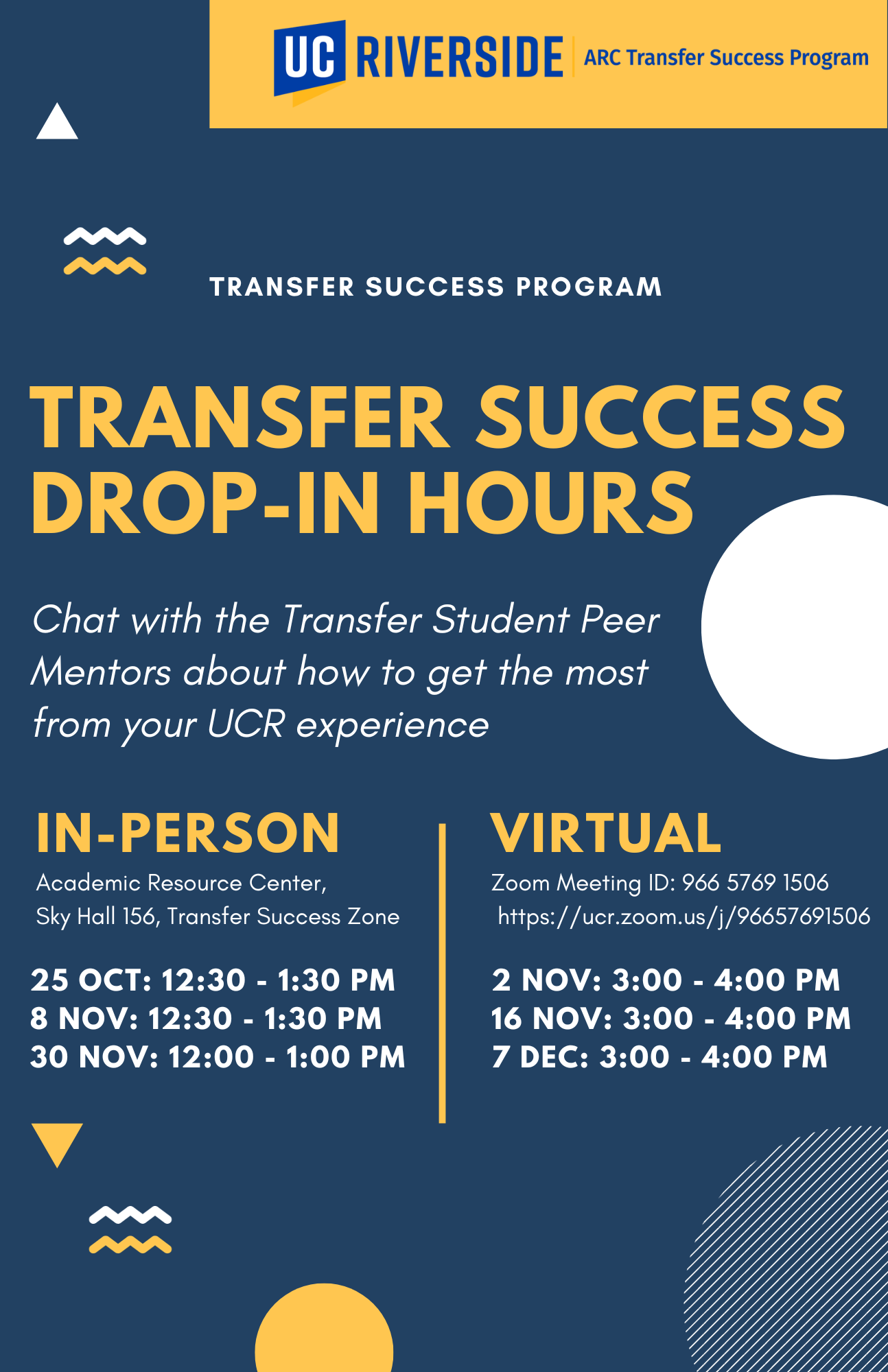 Transfers! This is the last push to prepare for your finals! See attached information for several opportunities to get study support!