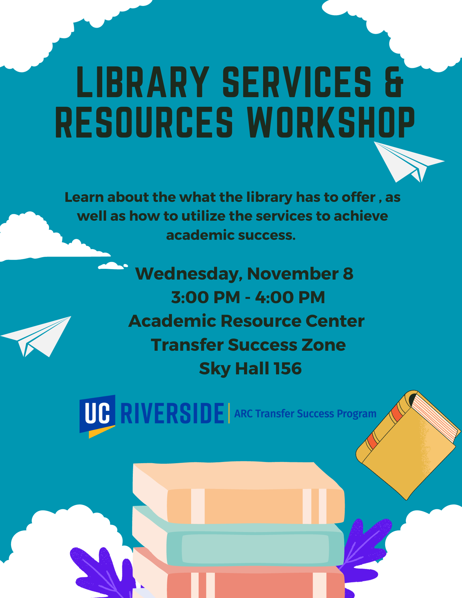 * Library Services & Resources Workshop: Wednesday, November 8, 3pm-4pm, Skye Hall 156