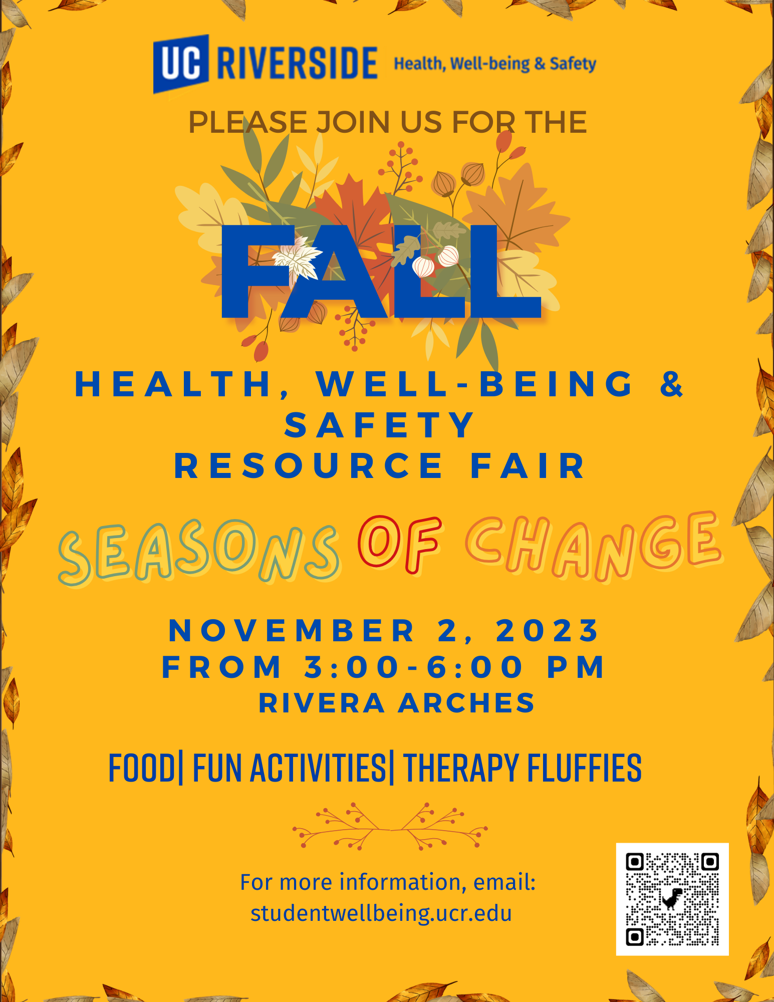 * Thursday, Nov 2nd - 3-6pm: Health, Wellbeing & Safety Resource Fair