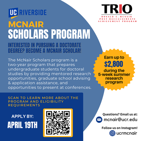 If you have any questions regarding the program or application process please email mcnair at ucr.edu<mailto:mcnair at ucr.edu>