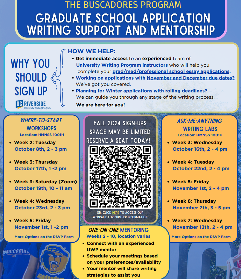 The Buscadores web page has been updated for Fall 2024: https://uwp.ucr.edu/gradapp.