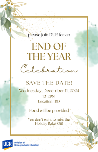 Please save the date for our Division's End of the Year Celebration on Wednesday, December 11, 2024. Additional information regarding the location will be provided at a later date.