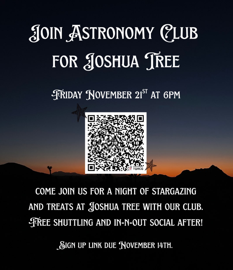 [Physics-grads-open] Astronomy Club Joshua Tree Trip ? Nov. 21 @ 6 PM