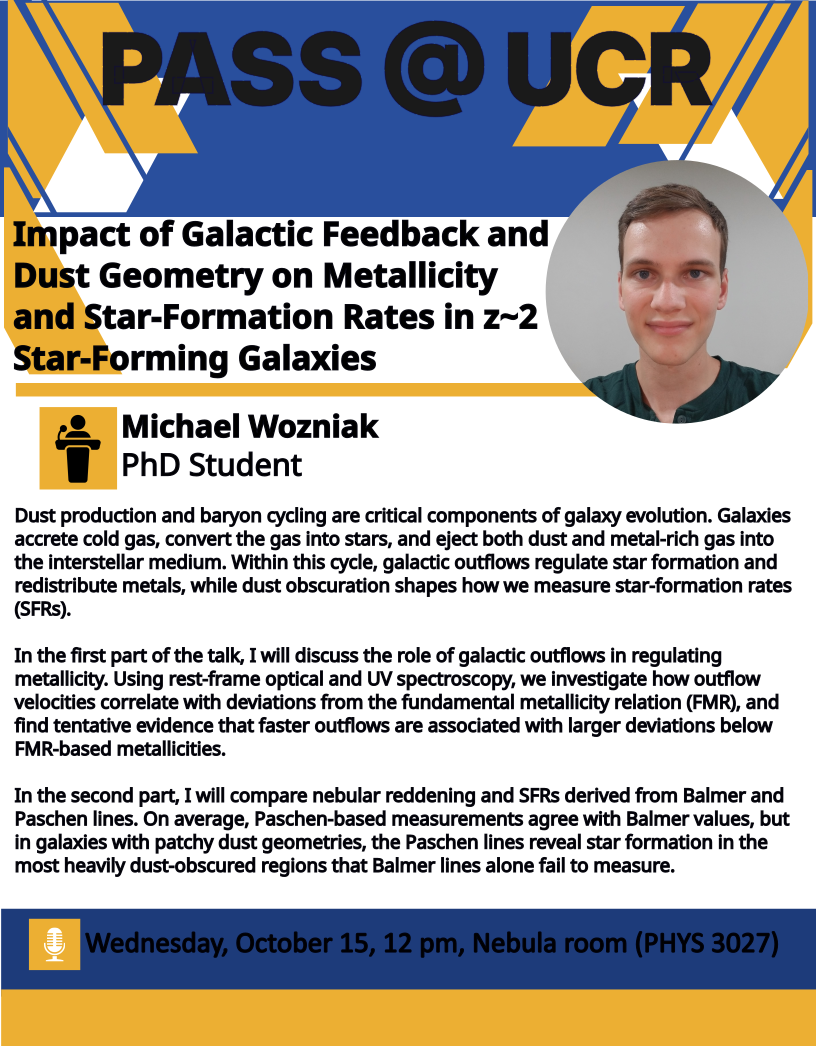 Wednesday, 12:00 pm, Nebula Room (PHYS 3027)