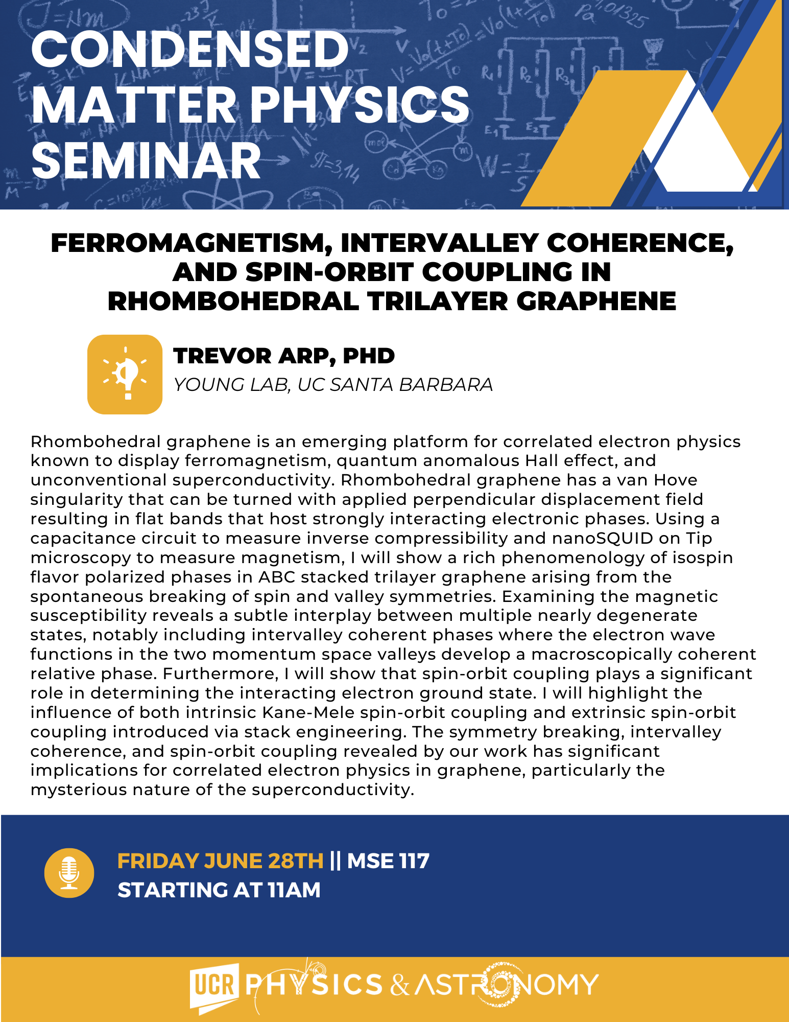 Please join us for a condensed matter seminar tomorrow with Dr. Trevor Arp.