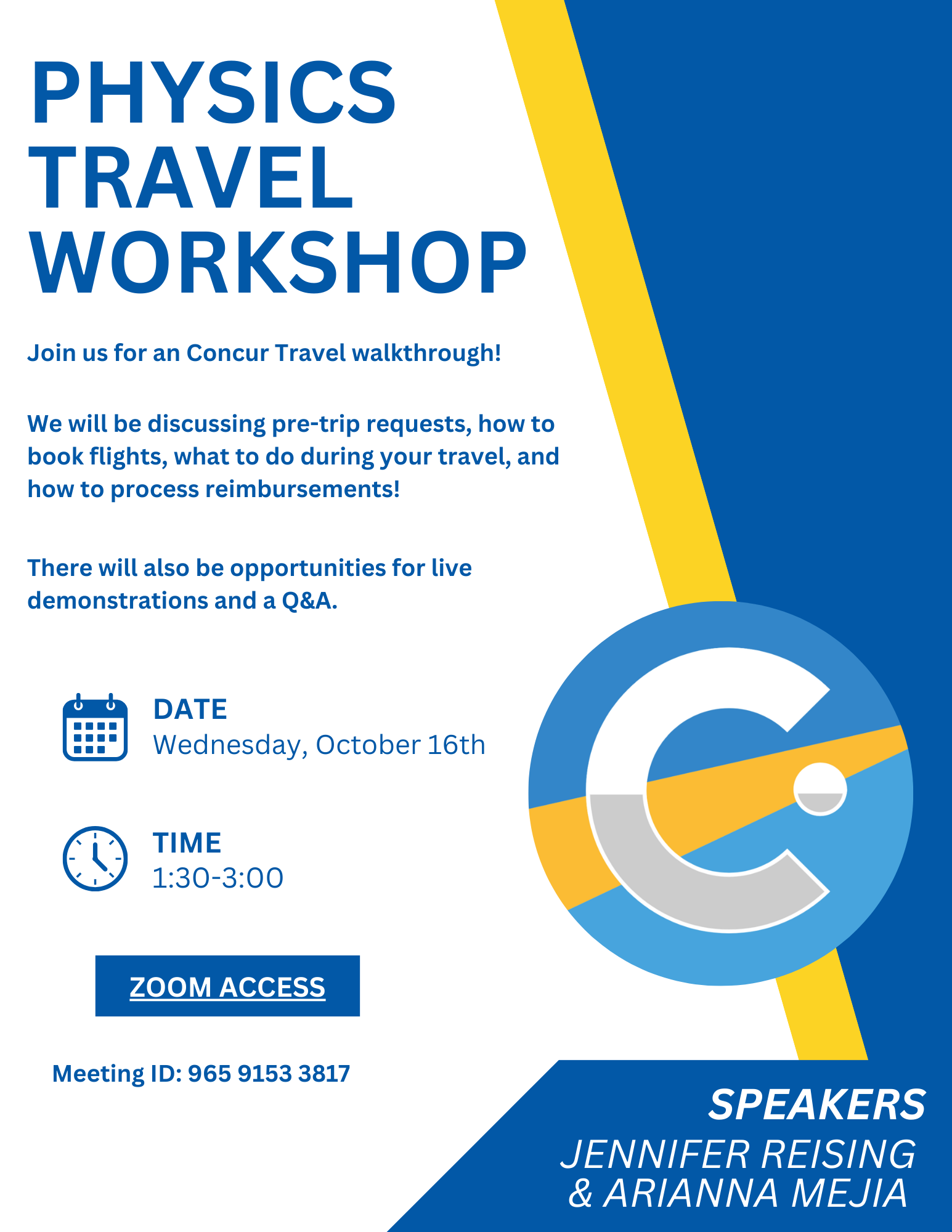 [Physics-talks] Physics and Astronomy: Travel Workshop! (October 16th at 1:30pm)