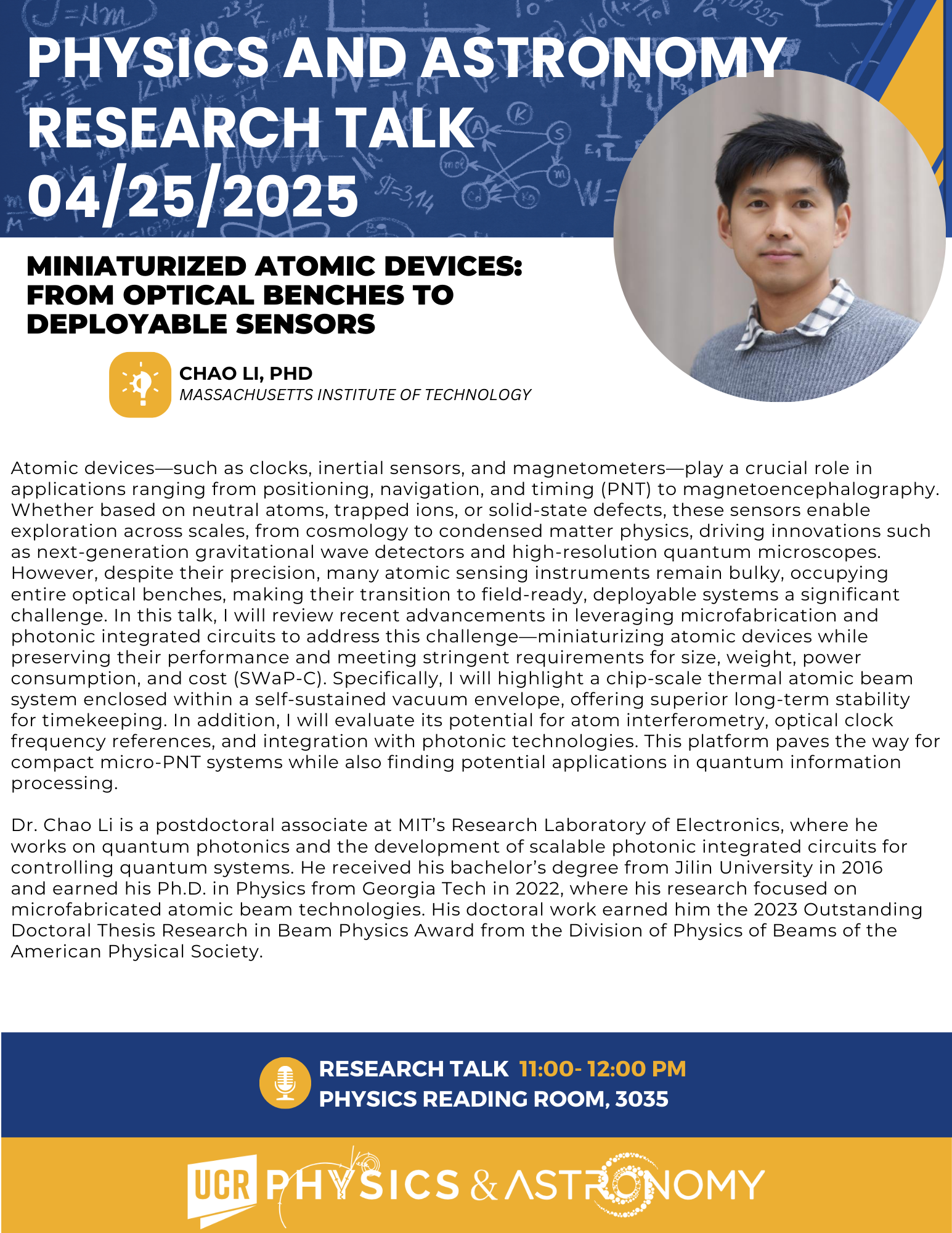 [Physics-talks] Join us for a Physics & Astronomy Talk – Chao Li, 4/25/2025