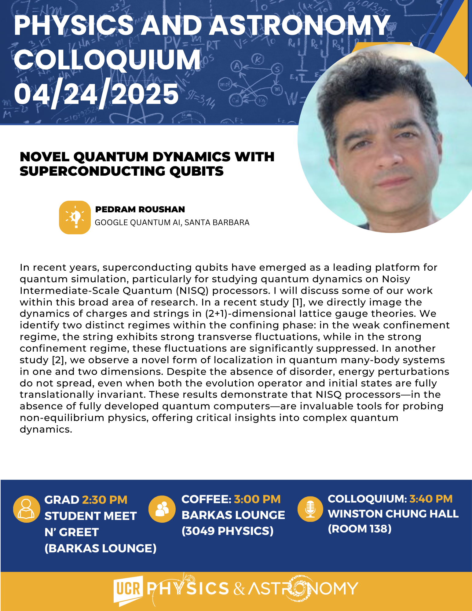 Pedram Roushan from Google Quantum AI, Santa Barbara. Dr. Roushan will be