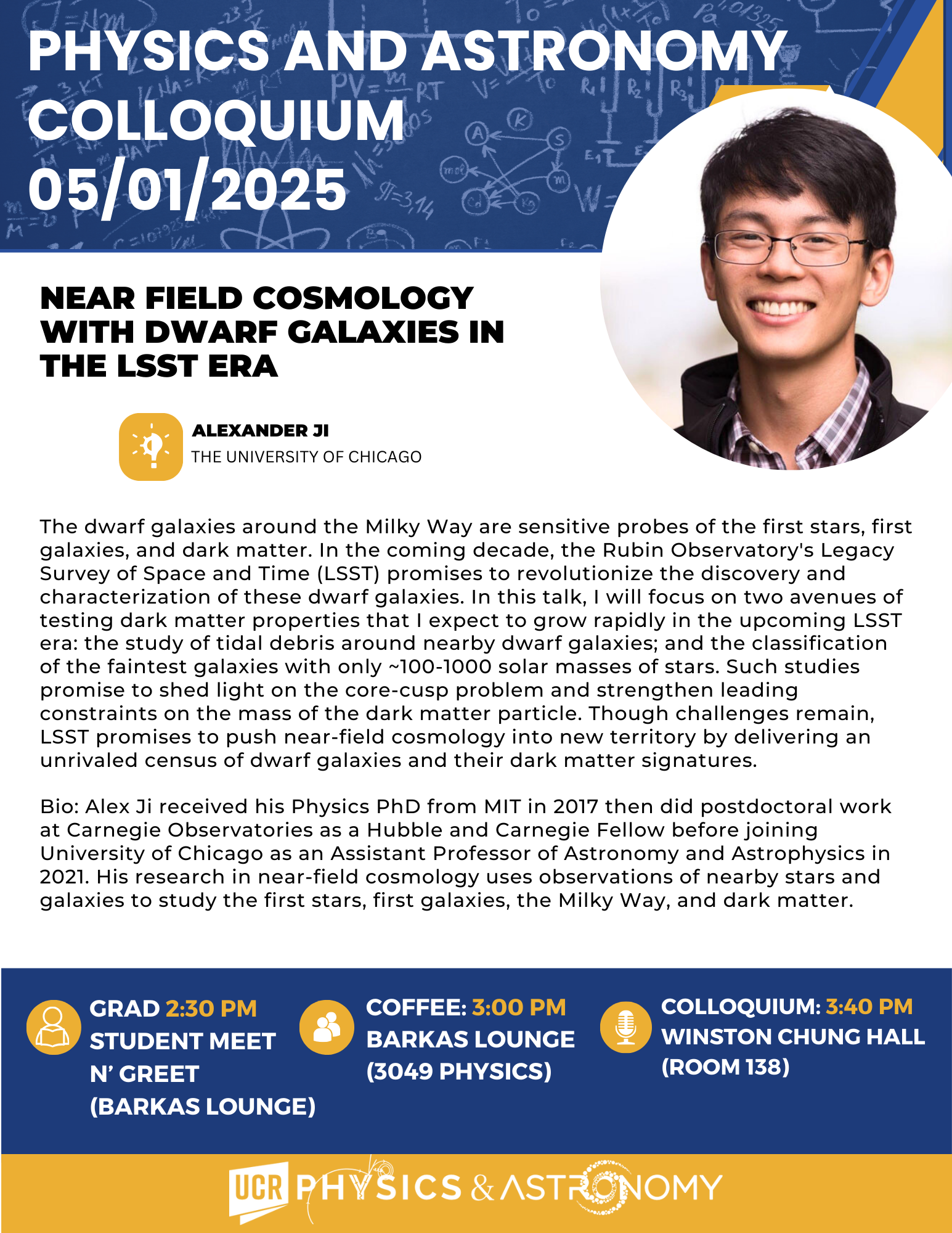 May 1, featuring Dr. Alexander Ji, Assistant Professor of Astronomy and