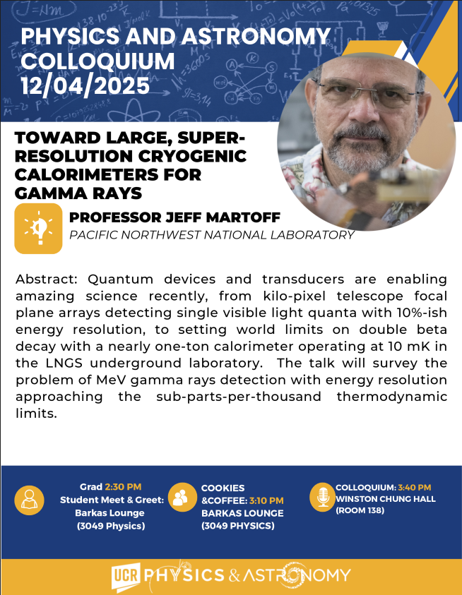 [Physics-talks] Thursday 12/4/2025 Colloquium – Professor Jeff Martoff from PNNL