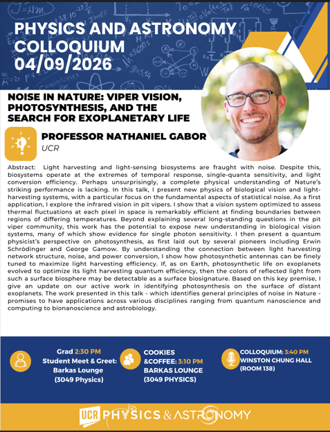 [Physics-talks] COLLOQUIUM TODAY 04/09/2026 – Don't Miss Dr. Nathaniel Gabor from UCR!