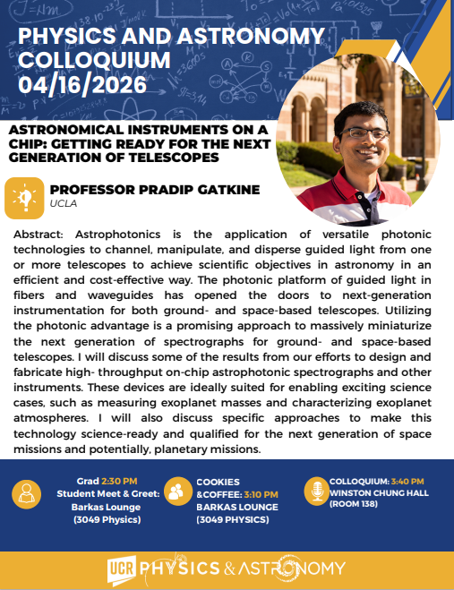 [Physics-talks] COLLOQUIUM THURSDAY 04/16/2026 – Don't Miss Prof. Pradip Gatkine from UCLA!