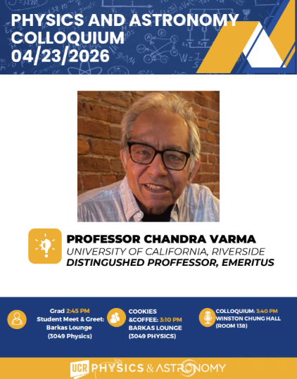 [Physics-talks] COLLOQUIUM THURSDAY 04/23/2026 – Don't Miss Dr. Chandra Varma from UCR!