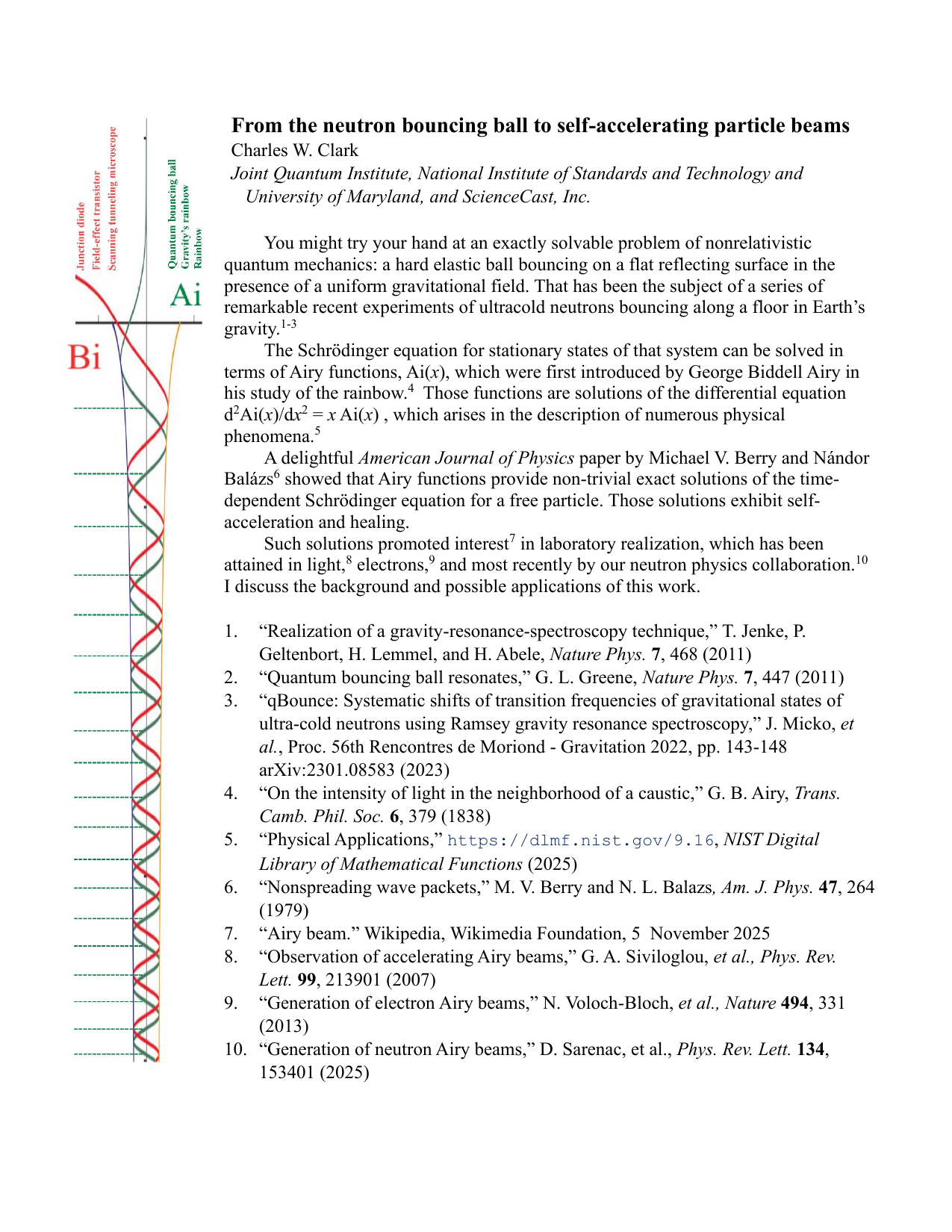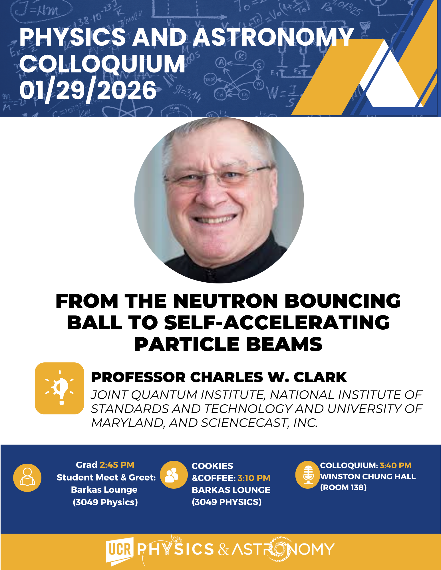[Physics-talks] TODAY! BARKAS LOUNGE @2:30! 01/29/2026 Colloquium – Professor Charles W. Clark from Joint Quantum Institute, NIST, and University of Maryland