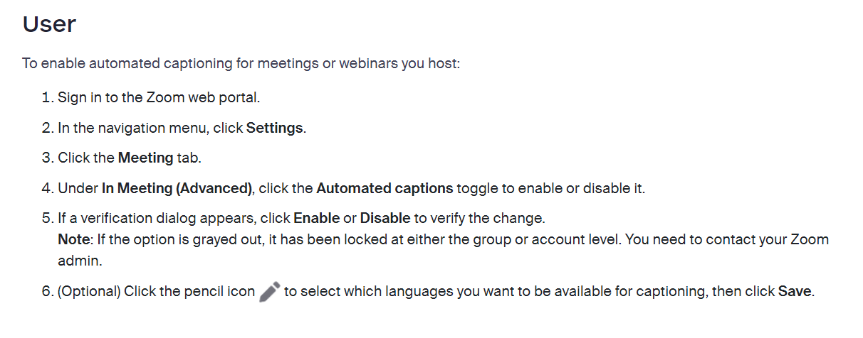 to enable captions in all the meetings you host. Prof. Merolla, I added