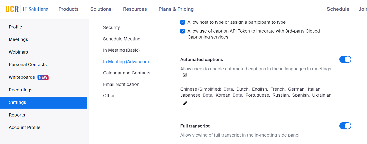 > to enable captions in all the meetings you host. Prof. Merolla, I added